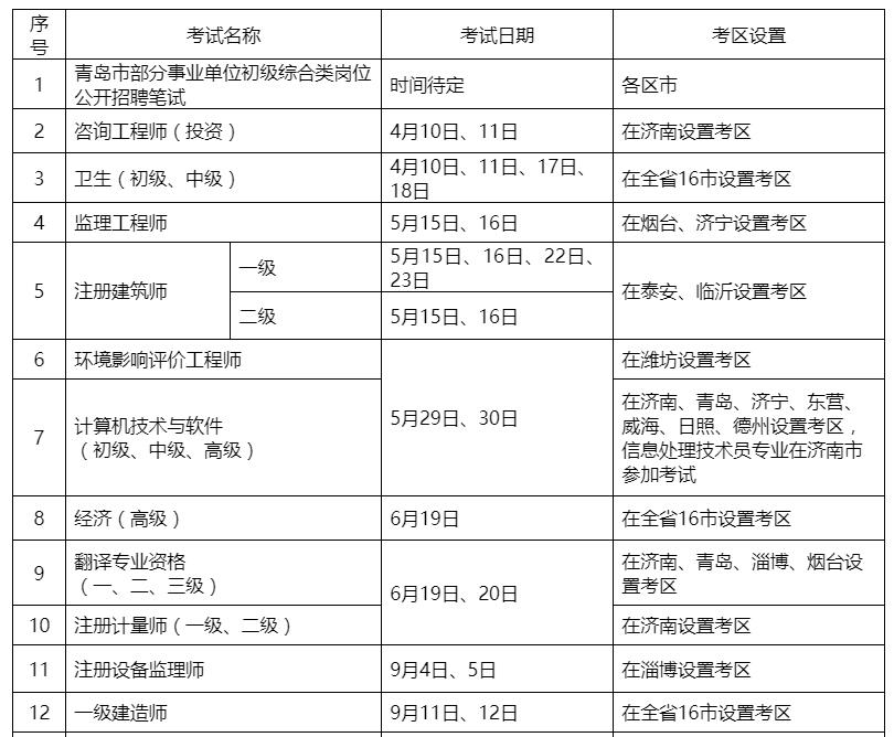 青島2021年度人事考試工作計(jì)劃及考區(qū)公布