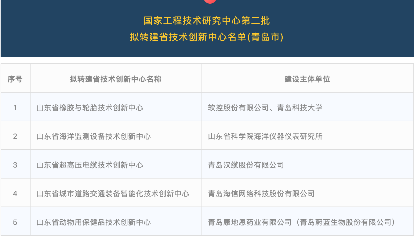 青島5個國家工程技術研究中心擬獲轉建省技術創(chuàng)新中心