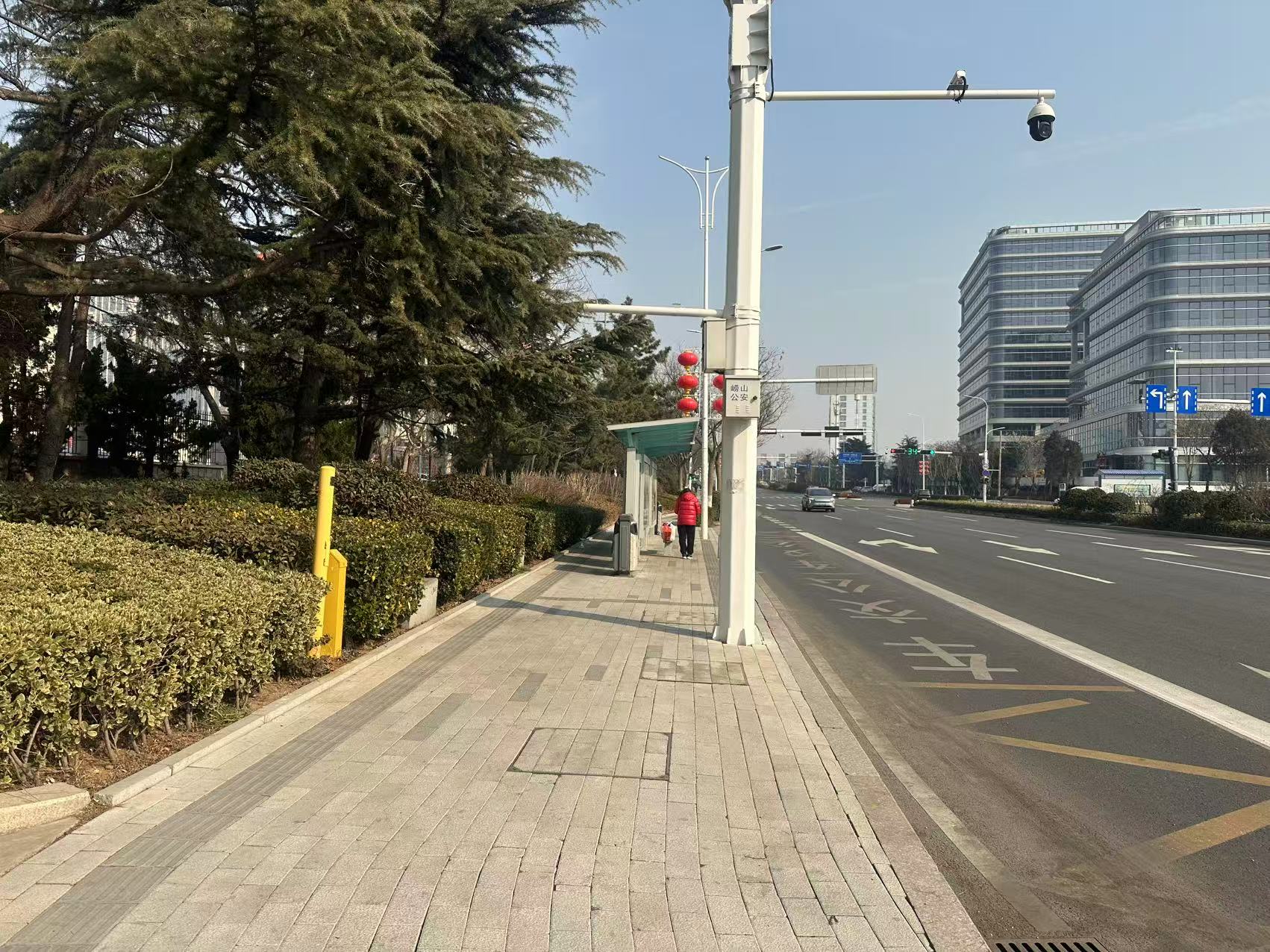 西海岸新區(qū)某路口的道路中央護(hù)欄該清洗了 官方:已清洗完畢