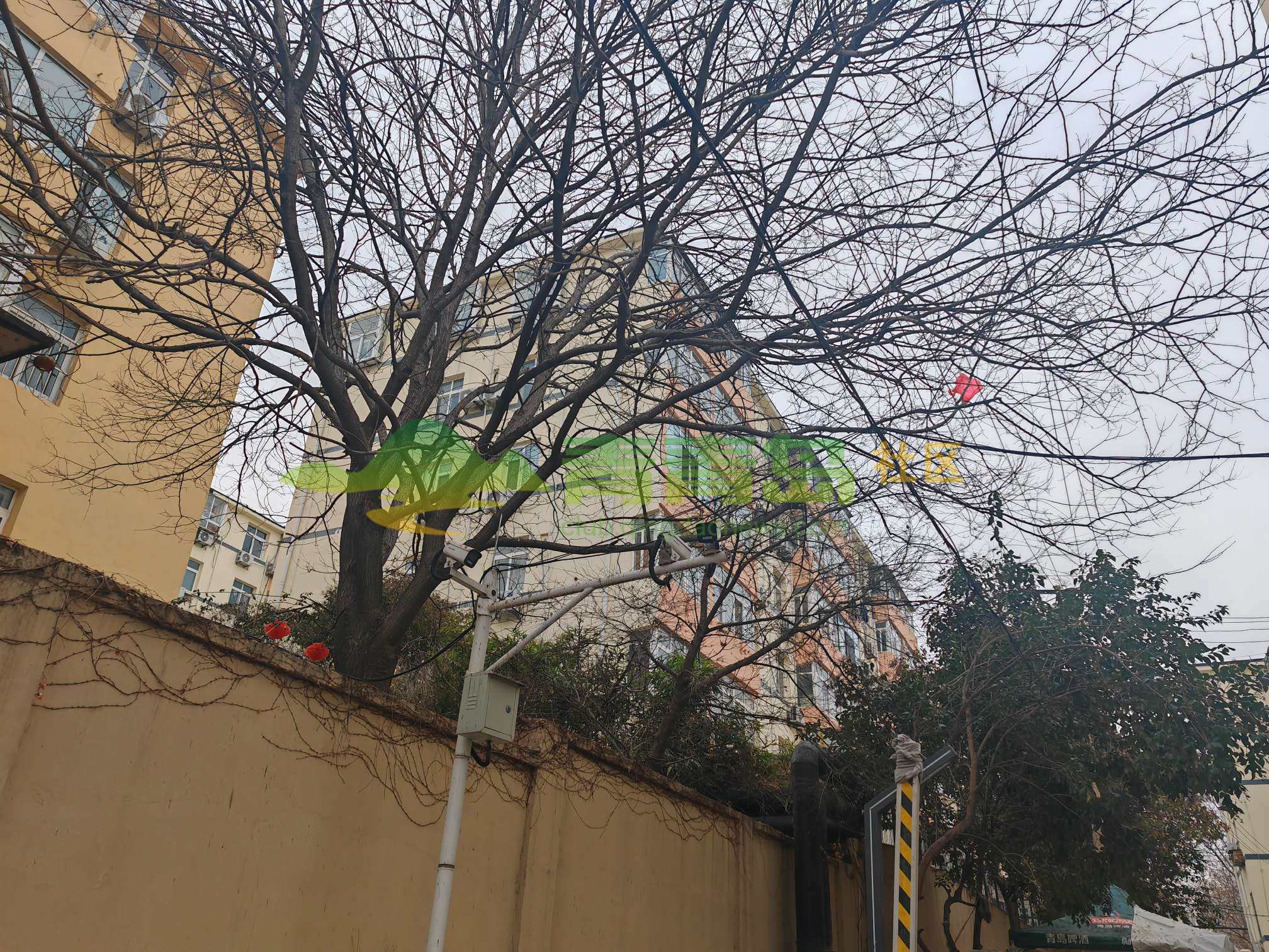 市南區(qū)一小區(qū)居民反映樹枝與高壓線交織有隱患 街道辦:已修剪完畢