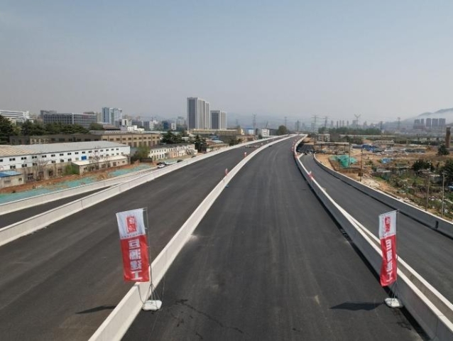 新進(jìn)展!跨海大橋高架路二期工程一標(biāo)段瀝青攤鋪完成