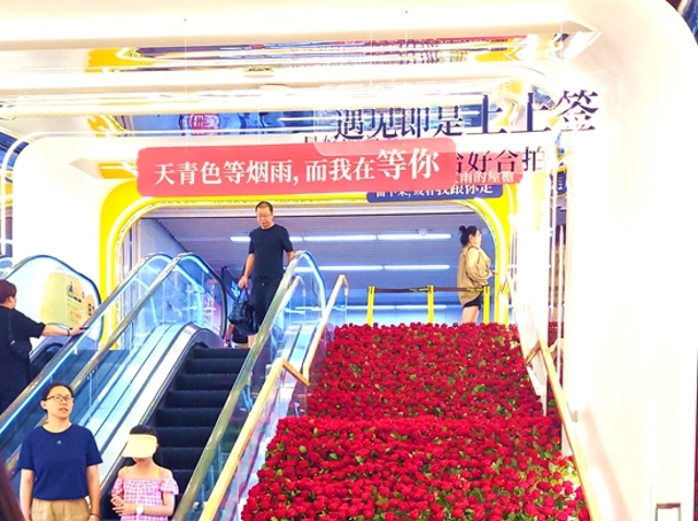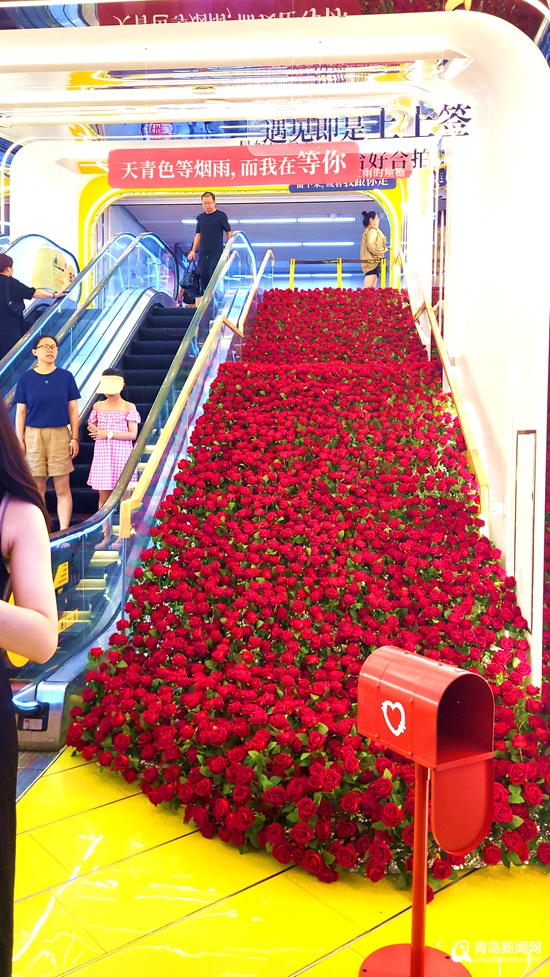 七夕將至 被青島浪漫到了!地鐵站里驚現(xiàn)“玫瑰瀑布”