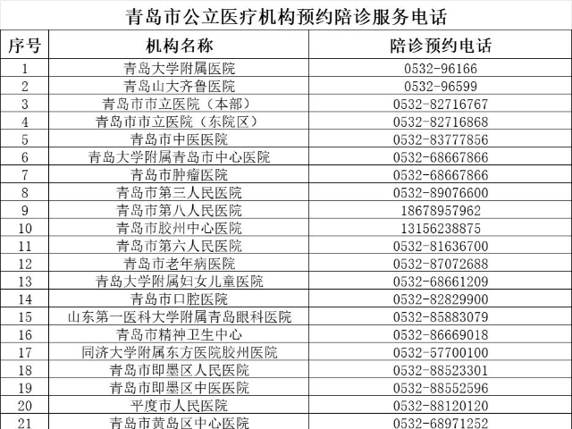 收藏!青島52家公立醫(yī)療機(jī)構(gòu)公布預(yù)約陪診服務(wù)電話
