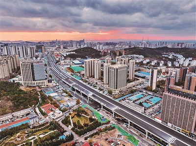 重慶路快速路工程沖刺“收官戰(zhàn)” 瀝青混凝土攤鋪和橋上附屬設(shè)施安裝施工全面展開
