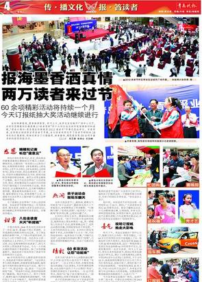 10月20日、21日兩天,李滄寶龍城市廣場(chǎng)成了歡樂(lè)的海洋,因?yàn)?012青島日?qǐng)?bào)社·青島報(bào)業(yè)傳媒集團(tuán)讀者節(jié)在此舉行?!薄 ±畲鬆斦f(shuō),退休以前,他是一名機(jī)關(guān)公務(wù)員,每天閱讀單位訂閱的《青島日?qǐng)?bào)》是他幾十年的習(xí)慣。...[詳情]