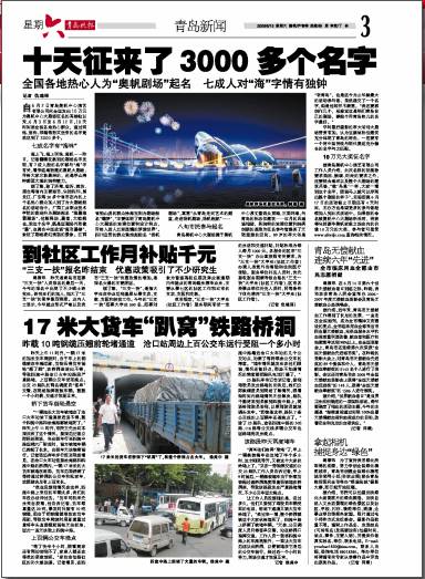 自6月2日青島奧帆中心演藝有限公司向全國發(fā)出10萬元為奧帆中心大劇場征名的英雄帖以來,6月3日至6月12日,10天時(shí)間里全國各地?zé)嵝娜罕?,通過網(wǎng)絡(luò)、信件、郵箱等形式送來的名字竟然達(dá)到了3000多個(gè)。