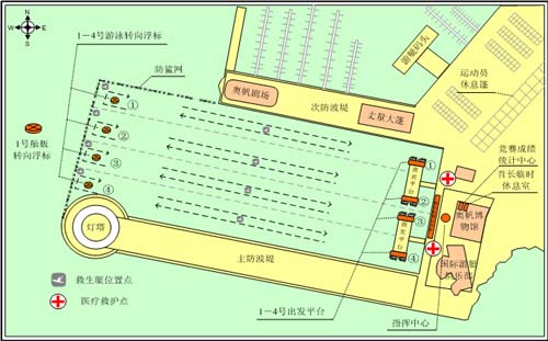 首屆海軍軍事三項(xiàng)競(jìng)賽游泳賽區(qū)示意圖