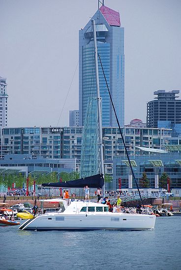 青島號大帆船進行航行表演